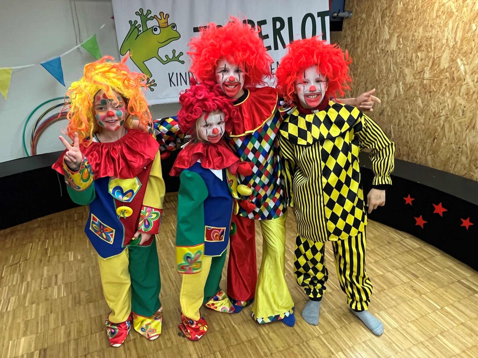 Wir üben den ganzen Tag verschiedene Zirkuskünste wie Jonglieren, Tierdressuren, Akrobatik, Clown etc. und führen das Gelernte den Eltern in einer richtigen Zirkusvorstellung vor. Die Vorstellung beginnt um 15 Uhr...